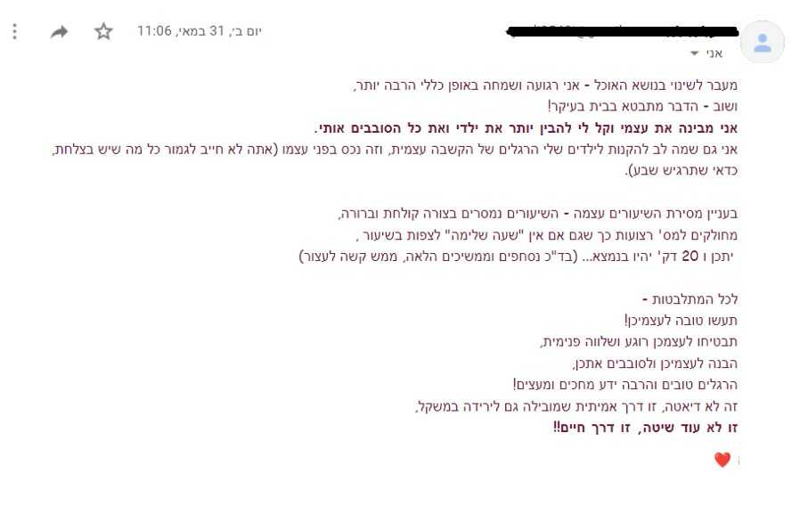בכל שבוע תקבלי למייל הזמנה להדרכה חדשה שמחכה לך באתר הקורס, עם ידע וכלים