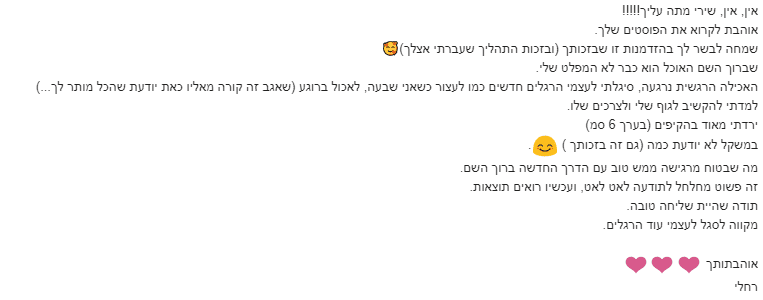 אם יש לך שאלה או ההתלבטות ומשהו נוסף שאת רוצה לדעת תכתבי לי!