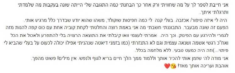 עברתי דרך ארוכה ומרתקת בנוגע לאכילה רגשית