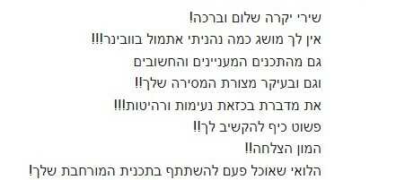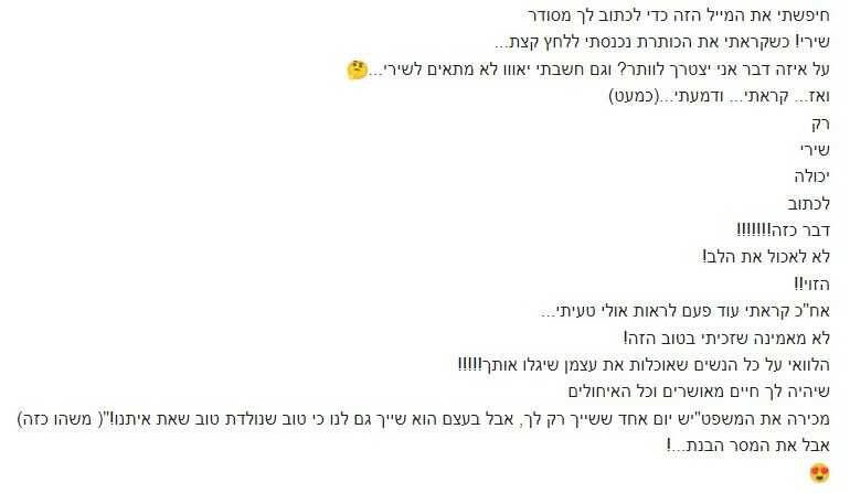 ומשהו נוסף שאת רוצה לדעת תכתבי לי!