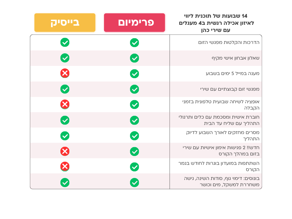 נפגש 3 פעמים לזום לייב עם שאלות ותשובות לקבוצה הסגורה בלבד, ולזום סיום בתום התהליך.